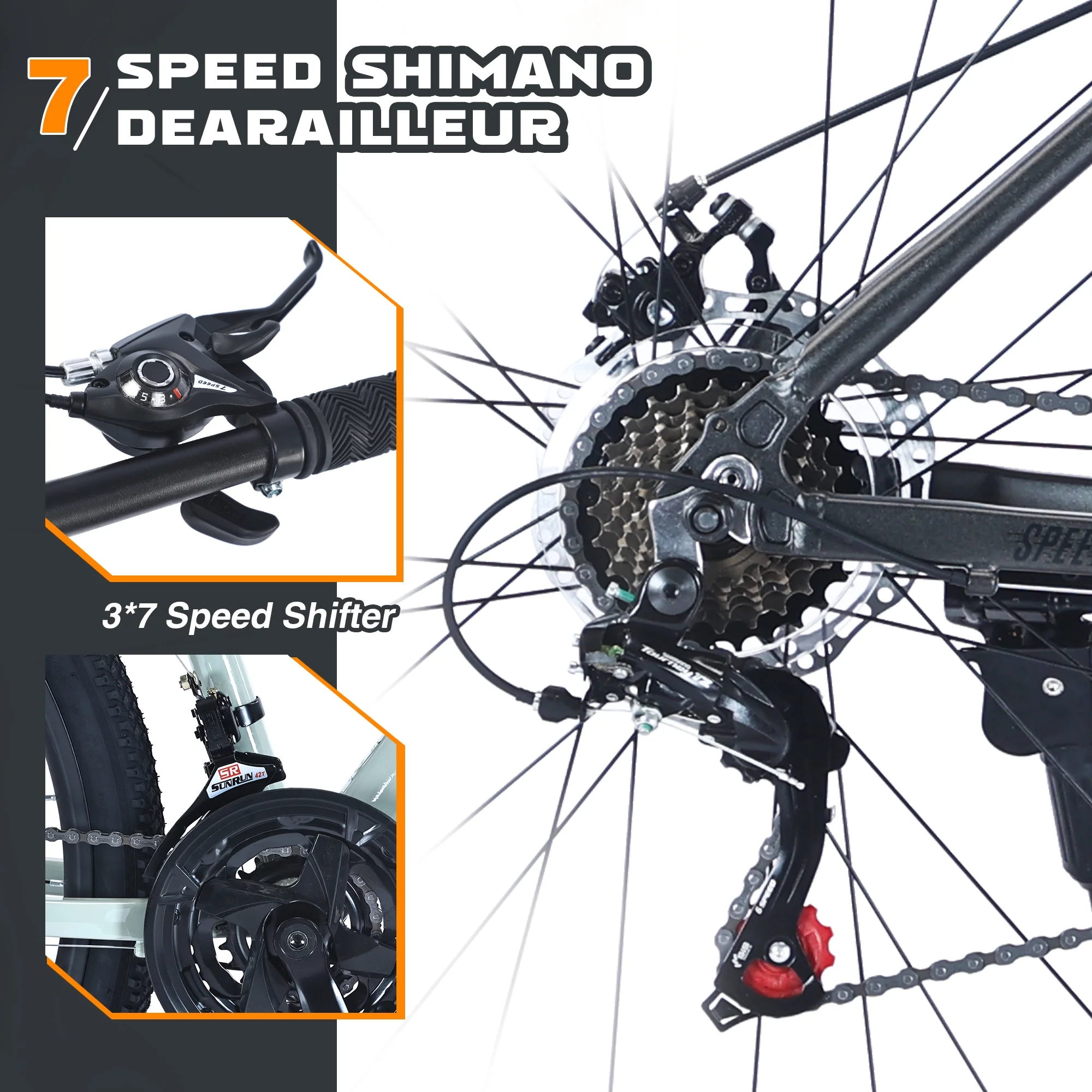 21-Speed Gear System: Equipped with a 7-speed rear derailleur and a 3×7 speed shifter, changing gears is easy and smooth. With 21 speed options, you can easily adjust your pedaling effort to match the terrain and your fitness level.