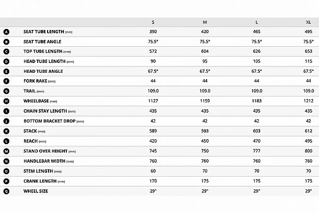 - Crankset: Praxis Cadet, 32t, 55mm chainline S:170mm, M:175mm, L:175mm, XL:175mm
