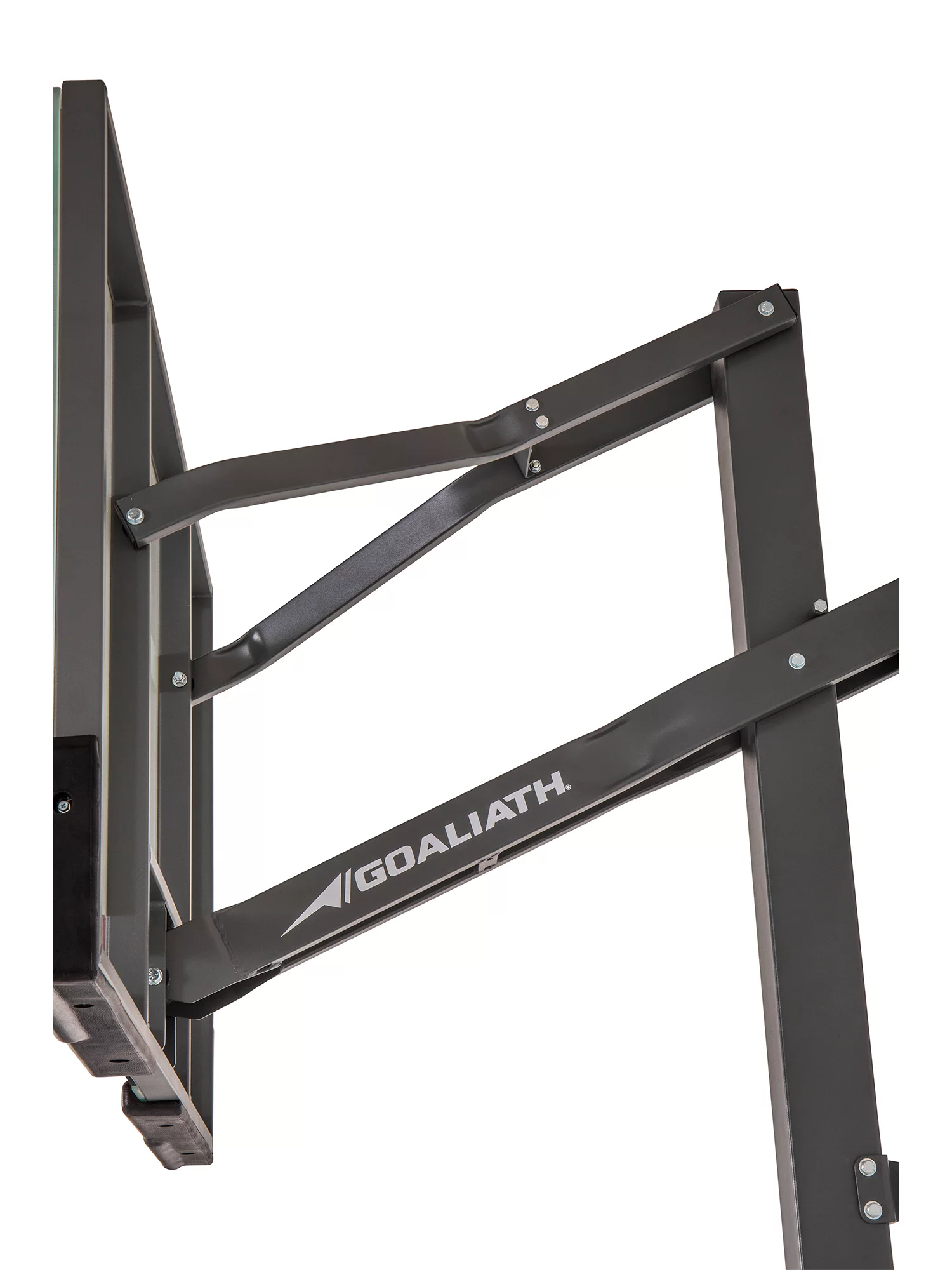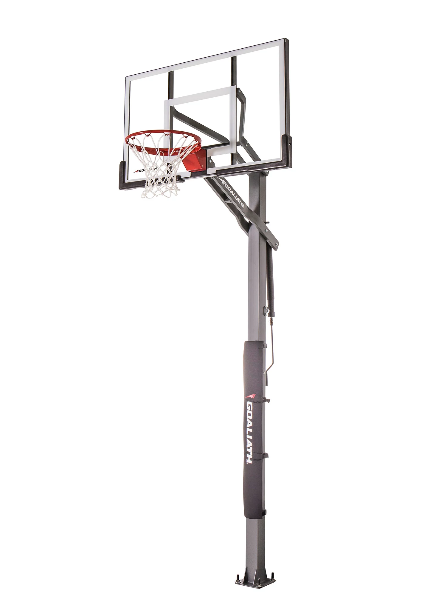 Dominate your home court with the Goaliath® 54†Prodigy In-Ground Basketball Hoop. This in-ground hoop features a tempered glass backboard, a 4â€x4†two-piece pole, and pre-assembled pro-style flex rim for a strong and durable basketball system. Featuring new lower board arms and pole lock technology, the Prodigy hoop offers increased strength and stability during aggressive play. With corrosion protection the Prodigy hoop holds up to the weather and the intense pick-up game. Goaliath basketball hoops are made by the same company that manufactures Goalrilla basketball hoops/systems. Get years of fun with the Goaliath® 54†Prodigy In-Ground Basketball Hoop.