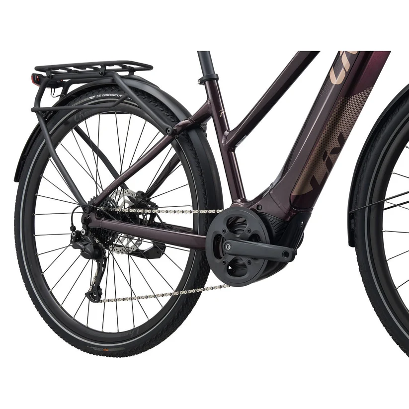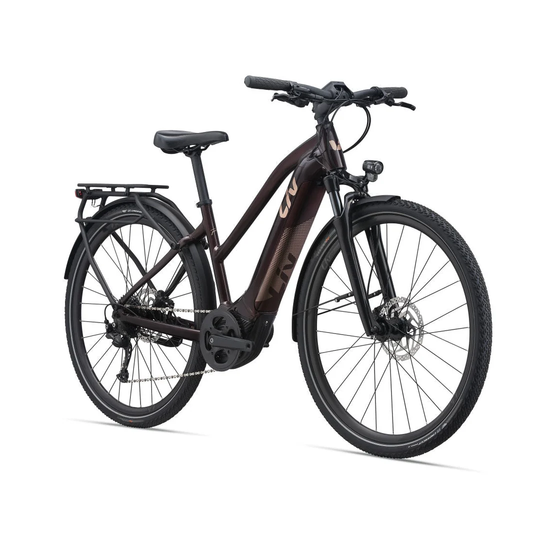 The reliable and easy-to-access EnergyPak is beautifully integrated into a lightweight and durable ALUXX SL-Grade aluminum frame, designed and tuned for women using Liv’s women first design philosophy for a bike that zips along on longer adventures. Integrated dropouts make adding accessories easy, and paired with fenders and an integrated light on the head tube, Amiti E+ is ready for comfortable commuting or awe-inspiring point-to-point treks.