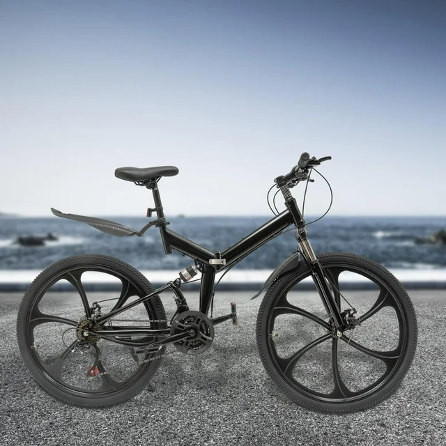 Loyalheartdy 26″ Folding Mountain Bike 21 Speed Non-Slip Carbon Steel City Bike Disc Brake Road Rock Mountain Bike Black