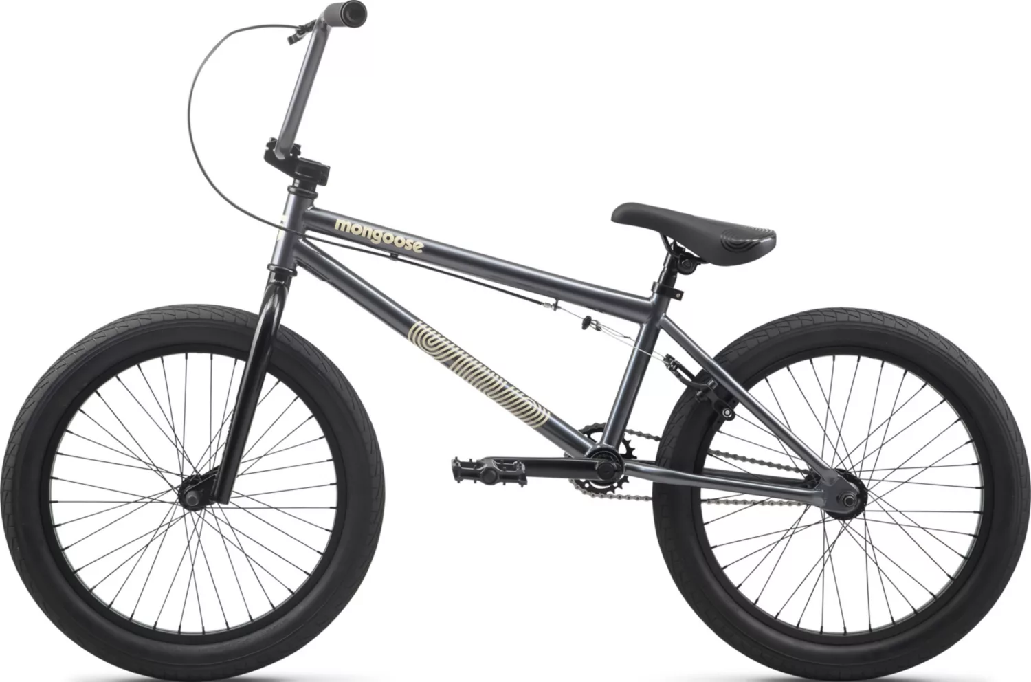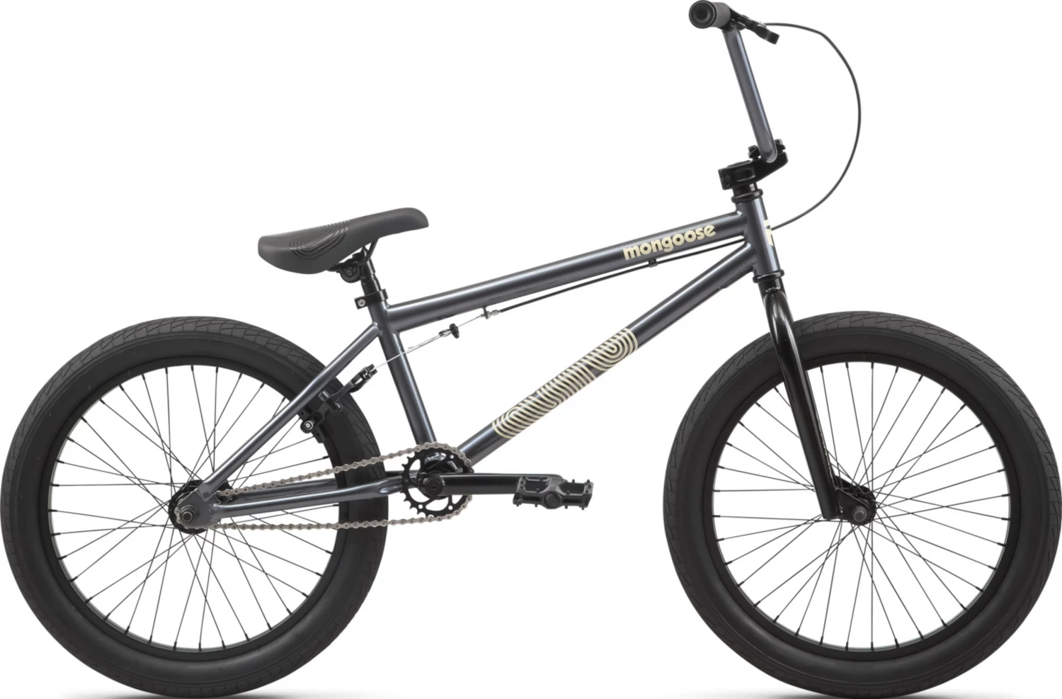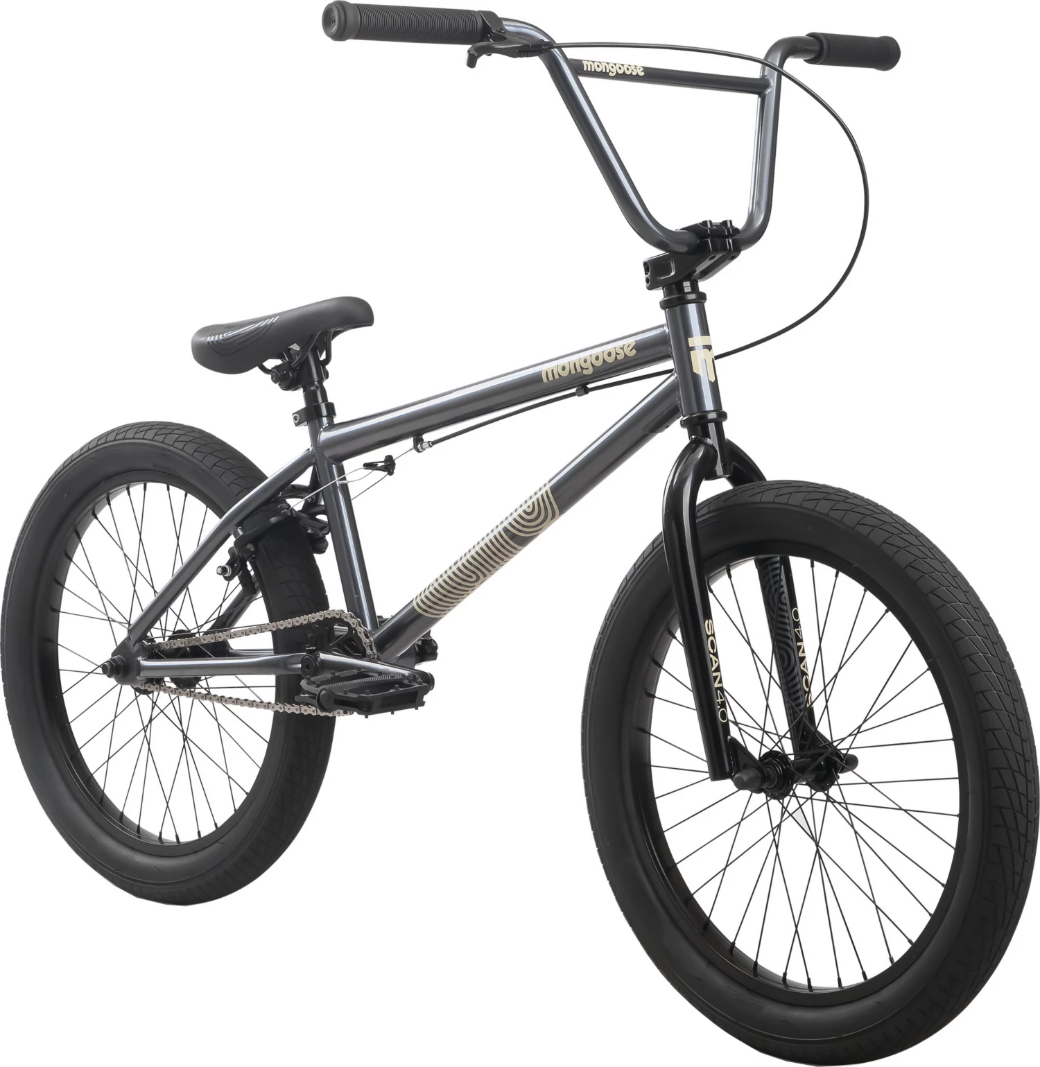 - Mongoose 20-inch Hi-Ten steel fork provides responsive, skatepark-ready steering