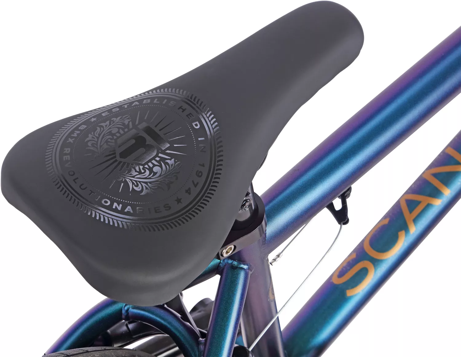 • Hi-Ten steel frame with BMX geometry is right at home on long visits to the skatepark