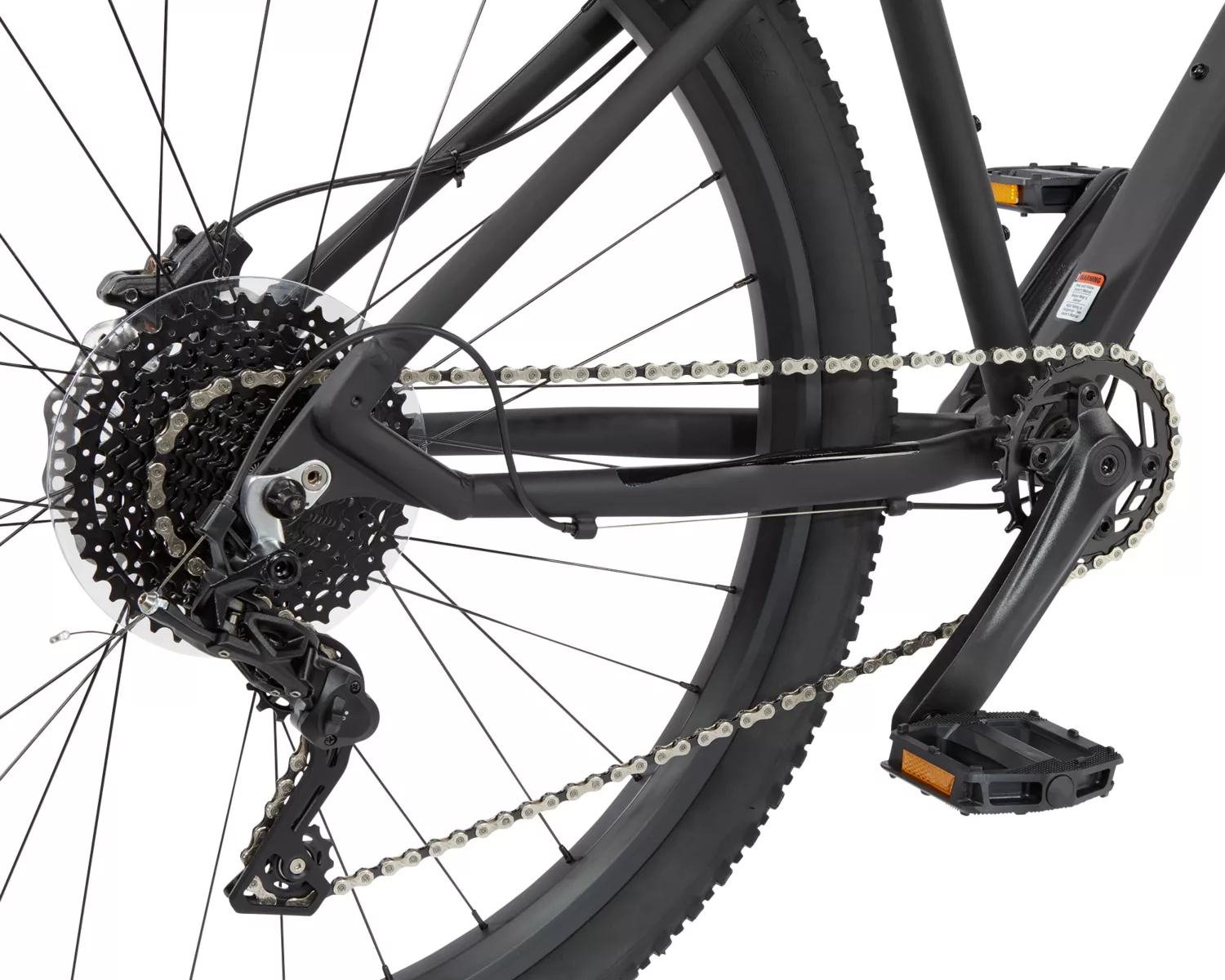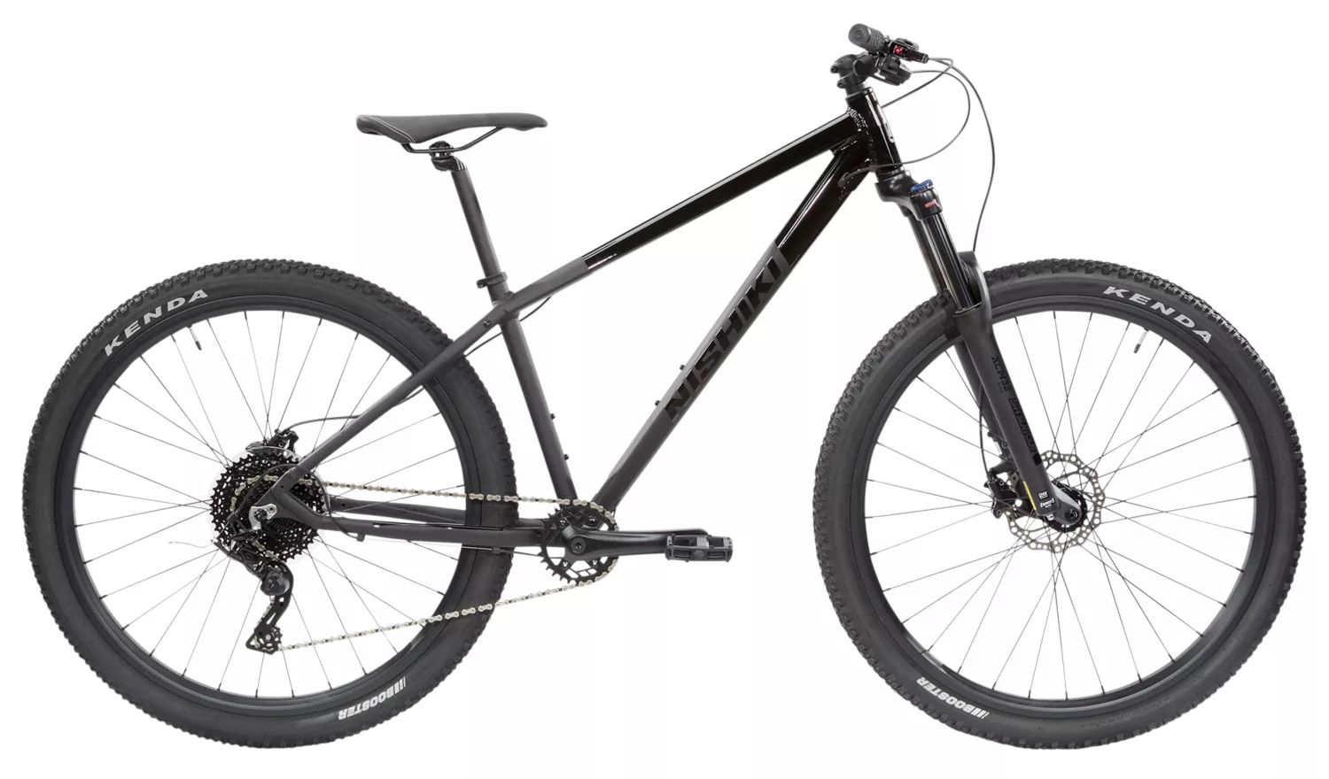 - Preloaded Suntour front suspension fork with 120mm of travel