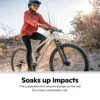 • Suspension fork absorbs bumps on the trail for a more comfortable ride.