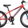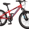 The Schwinn Boys’ Thrasher 20’’ Mountain Bike is designed for young riders looking to trade up to riding with gears and keeping up with adult riders. The aluminum frame features front suspension to smooth over uneven terrain, linear pull brakes for quick stops, and easy to use 7 speed twist shifters.