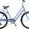 Relax with a ride on the Schwinn® Riverwalk comfort bicycle. The Riverwalk features a low-step aluminum comfort frame with rigid fork and upright geometry for a comfortable riding position for casual rides. The 7-speed twist shifter offers quick and easy gear changes, while the aluminum V-brake delivers secure stopping power. Plus, the full chain guard and chain ring guard provide added safety and help keep your pant legs clean.