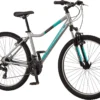 The Standpoint is a Schwinn® Signature mountain bike that features an aluminum mountain frame with Schwinn suspension fork for controlled riding on the trail. 21 speed twist shifters provide quick gear changes, while front and rear v-brakes deliver crisp stops. Plus, 27.5 x 2.2-inch all-terrain tires give you go-anywhere traction.