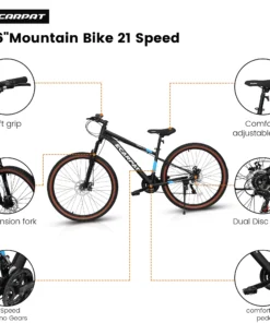 27 inch Men’s Mountain Bike, 21 Speed Aluminium Adult Bicycle with Disc Brakes & Suspension,Black