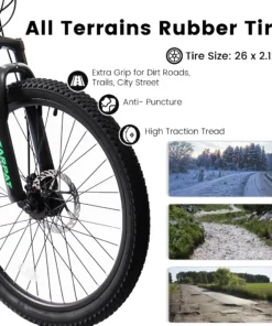 26″ Mountain Bike for Adults, Lightweight Aluminum Frame,Shimano 21-Speed,Black+Green
