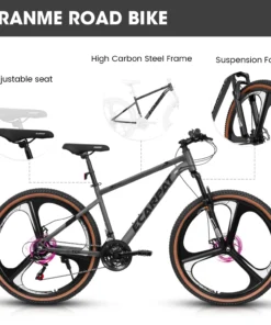Ambifirner 26 inch Adults City Bike Fat Tire Mountain Bike – Full Shimano 21 Speed – Dual Disc Brake – High-Carbon Steel Frame – Front Suspension for Kids Gift