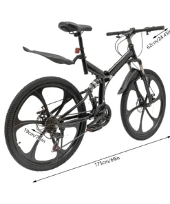 Wuzstar 26″ Foldable Mountain Bike, 21 Speed seat height Adjustable Unisex Mountain Bike Black